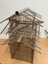 De houten tralies zitten op een paar puntjes los, dus niet geschikt als echte vogelkooi, meer voor decoratie!