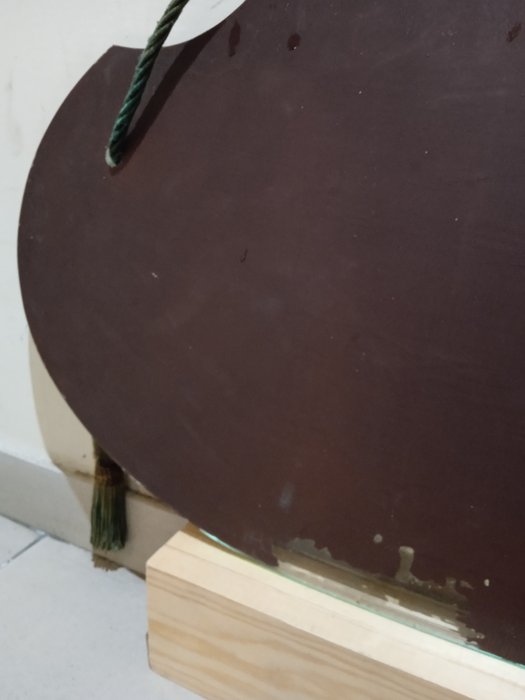 Stijlvolle en decoratieve spiegel voor interieurs. Aan de zijkanten authentieke "kwastjes" van groene zijdeachtige draad. Het spiegelglas is in goede staat met gebruikssporen. Wordt zeer goed verpakt en verzonden.