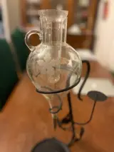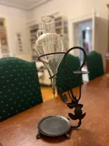 Vintage wijnfontein kristallen karaf beluchter smeedijzeren standaard uit de Elzas in Frankrijk.