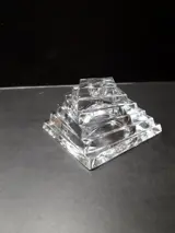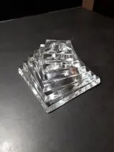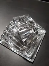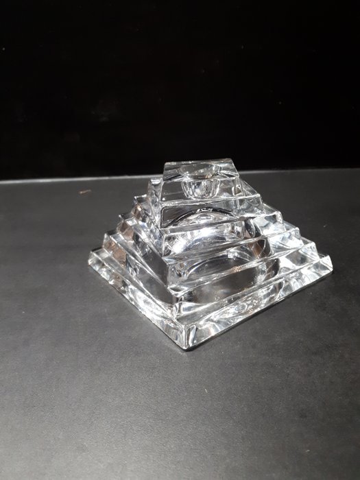 Zeer fraaie “twisted” kristallen kandelaar opgebouwd uit 6 lagen in trapezium vorm,Bij lichtinval ontstaat een mooie breking van het licht een sieraad op uw kast.