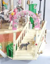 Bewegingsmechanismen door tandwielen en katrollen aangedreven door een enkele kruk. De set draait rond, sommige figuren gaan omhoog/omlaag, andere draaien zichzelf om. Verlichtingssysteem met 9 circuits en 9 beltpack-batterijen. Muziek via een Oostenrijkse muziekdoos van hoge kwaliteit.