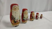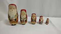 Prachtige met de hand beschilderde 5-delige Matroesjka met kerstmannen. Een zeldzame set.