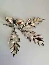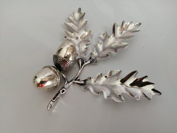 Prachtig ornament van twee eikels met bladeren, alles in 925 zilver, handgemaakt door Italiaanse ambachtslieden en in uitstekende staat, lichte gebruikssporen.