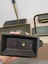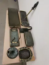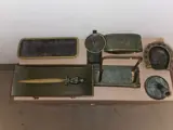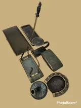 Zeer oude bureauset 8 delig compleet met sabel briefopener waarschijnlijk uit de 17e tot 18e eeuw. brons en messing. 3kg gewicht.