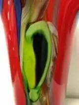 Prachtige geblazen glazen vaas, vol in kleur.