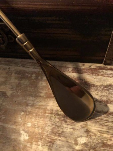 Mooie messing-schoenlepel met mooi handvat.