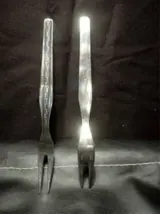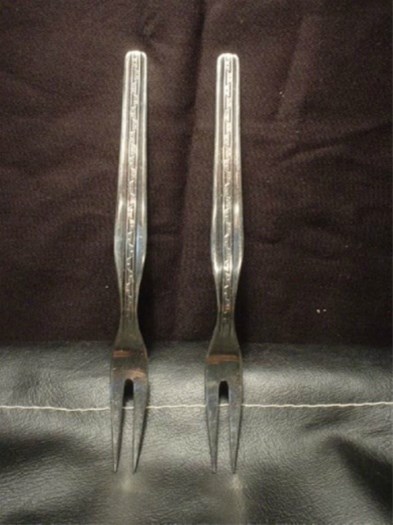 2 verzilverde broodbelegvorkjes.
