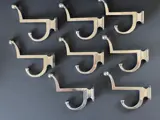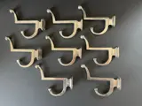 8 prachtige art deco periode 1930/1935 kapstokhaken in zilver metaal, zeer mooie vormgeving en zeer solide, geen vervorming of breuk, slechts kleine ouderdoms- en gebruikssporen, zeer glanzend metaal, exacte afmetingen op de laatste foto's. Zeer decoratief en goed in de art deco geest. De foto's dienen als beschrijving zorgvuldige verpakking