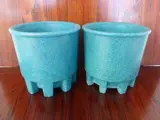 De pot met de brede pootjes heeft een chip aan een pootje en een (haar)lijntje.