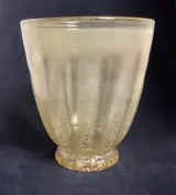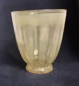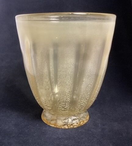 Rond 1935 door A.D. Copier voor de Glasfabriek Leerdam ontworpen tincraquele vaas, onderdeel van de collectie SONOOR. Het open tincraquele loopt mooi tot bovenaan door.