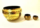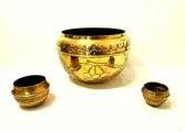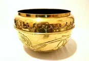 Plantenbakken (set van 3 verschillende) in reliëf messing, met Art-Nouveau motieven.