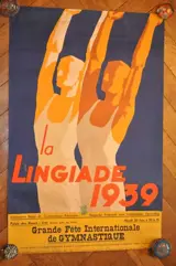 kort voor het uitbreken van WOII werd er in Brussel met name in het Palei des Beaux-Arts een groots internationale"La Lingiade" georganiseerd. We zien hier dikwijls foto's en pins van, maar een originele affiche is zeer uitzonderlijk.