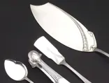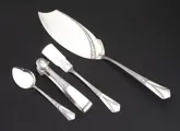 Deze 4 minder vaak voorkomende verzilverde bestekdelen behoren bij het Jugendstil bestekmodel: Empire.