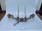 Twee fraaie antieken brons gegoten en gesmede (wand)(piano) kandelaren.