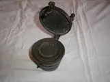 Antiek sluitgewicht of pijlgewicht. - Brons of koper? - Compleet met 9 in elkaar passende bakjes. - Op de deksel staan enkele getallen en u3. - Deze werden vroeger gebruikt in een apotheek , of in de munthandel. - 50,-