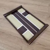 Bauhaus stijl dienblad afkomstig uit Duitsland. Het dienblad is van hout en glas vervaardigd en verkeert in een nette staat. De foto's maken deel uit van de omschrijving. Gaat zorgvuldig verpakt op de post.