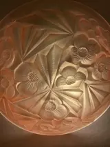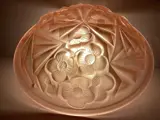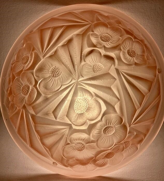 Mooie rosée kleurig persglazen kap met prachtigabstract floraal Art Deco motief in hoogreliëf.