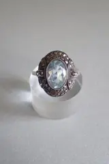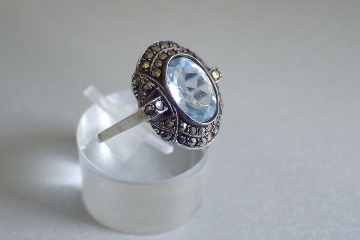Prachtige Art Deco ring met facet geslepen ( synthetische) spinel en markasieten.