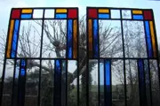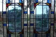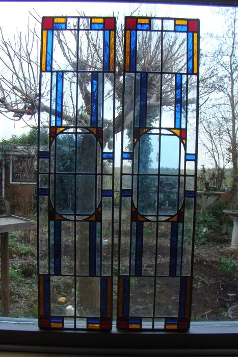 Twee fraaie Art-Deco glas in lood ruiten in goede conditie.