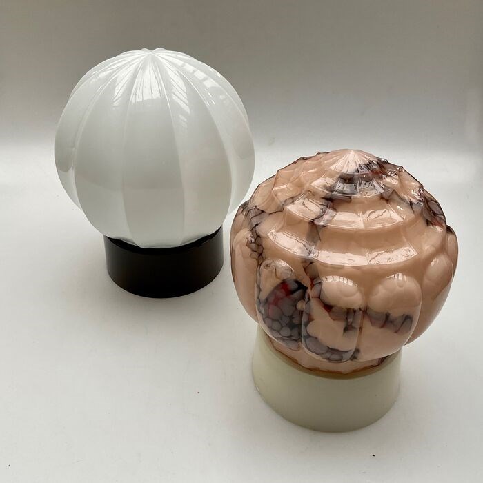 Bijzonder gemarmerdeplafondlampen van de Thabur Rutonfabrieken cq handelsonderneming uit Den Haag, uit hetArt deco tijdperk !