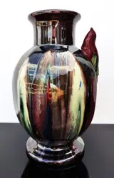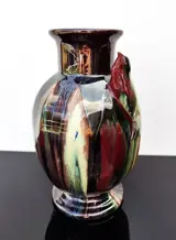 Een fraaie art deco vaas met een prachtige druipglazuur van een behoorlijke kwaliteit.