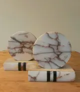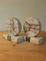De boekensteunen zijn in gebruikte staat met gebruikssporen zo zijn er kleinere chips in de marmer aanwezig.