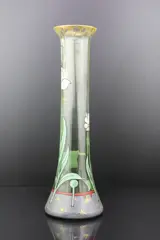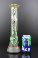 Art Nouveau emaille beschilderde bloemen glazen vaas.