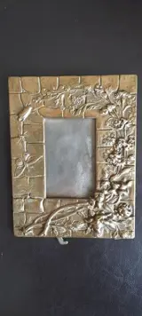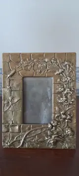 Art Nouveau verguld bronzen fotolijst, gedecoreerd met bloemen en insecten. In perfecte algemene staat, het heeft de originele patina van die tijd.