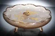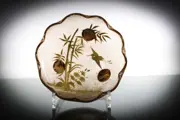 Prachtige schaal met een decor van verguld Japonisme van bambou en kraanvogels op een zuur geëtste " tappiserie " achtergrond .