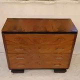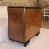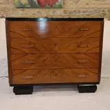 Ladekast in gevlamd wortelnotenhout, met ebonisatie aan de omtrek, in zeer goede staat, onlangs volledig opnieuw gepolijst, met name de vintage Lucite-handgrepen, van hotel Lido in Venetië