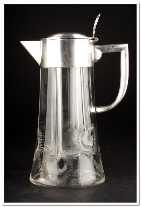 Grote glazen kan met ijsinzet. Jugendstil glas. Duitsland, Berlijn, begin 20e eeuw. Heel goede staat.
