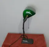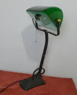 Zeldzame Banklamp ca. 1930 met groen glazen Schirm.
