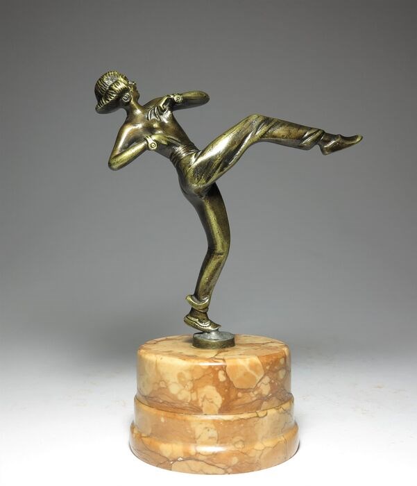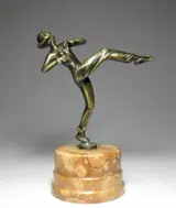 Prachtig Oostenrijks bronzen beeld met patina, voorstellende een dansende dame.