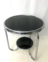 Prachtige rooktafel / bijzettafel met 'gewolkte' bladen met glasplaat.