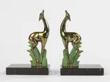 Een mooi koppel Art Deco boekensteunen, met beelden van herten.