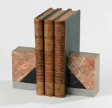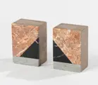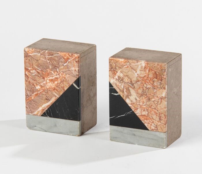 Een mooi koppel Art Deco boekensteunen, gemaakt van verschillende soorten marmer.