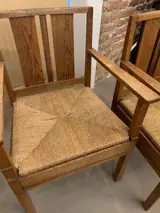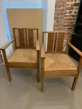 2 x eiken houten bureau/salonstoelen met vernieuwde koorden zitting (art deco stijl)