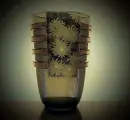 Prachtige vaas 'Egmont' uit de collectie Luxval 1935 ontworpen door Charles Graffart en René Delvenne voor Val Saint Lambert , uitgevoerd in de kleur Olive , gecombineerd met vergulde elementen.