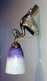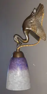 - Een prachtige Art Deco wandlamp die een roze flamingo voorstelt die een hanglamp in zijn snavel vasthoudt. Het beeld is gesigneerd JAMAR. Het is in zeer goede staat, een paar kleine krasjes op de bovenkant van de vogelkop.