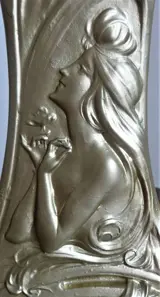 een prachtige tafelklok gesigneerd door de Franse kunstenaar Claude Bonnefond en verwijzend naar de Art Nouveau periode van begin 1900.