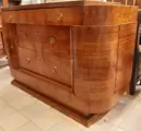 Italiaanse Art Deco ladekast in goede staat, zoals u op de foto's kunt zien. 3 lades en 2 afgeronde zijdeuren.