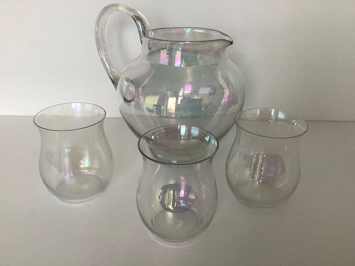 Een waterschenkkan iriserend 17.5 bij 14 cm
