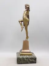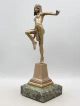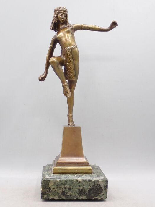 Naar Alonzo, een fijn gegoten bronzen figuur van een Egyptische danseres die op een sokkel staat, gemonteerd op een vierkante serpentijnbasis voor een hoogte van 26 cm en een gewicht van 1,6 kg.