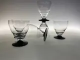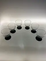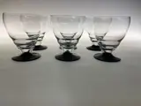 Zes mooie art deco wijnglazen met zwarte voet.De glazen hebben een golvende bolling beneden aan glas .