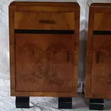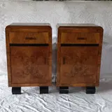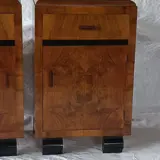 Paar nachtkastjes in notenhout met ebonisatie, zeer goede staat, onlangs volledig opnieuw gepolijst, van Palazzo Venezia Città, originele bakelieten hardware uit de periode