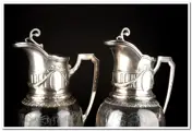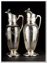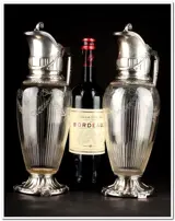 Een paar grote wijnkaraffen. Verzilverde zetting. Frankrijk rond 1900. Heel goede staat.