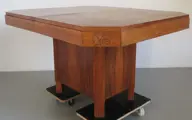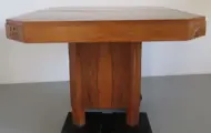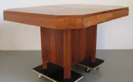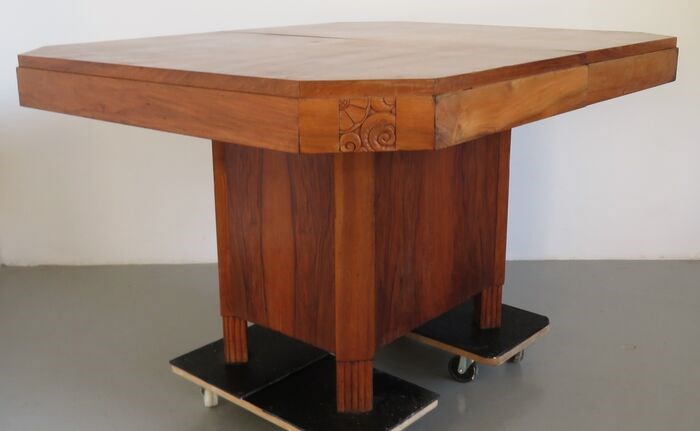 Deze octogonale tafel is voorzien van fraai Art Deco snijwerk van bloemen en varens.