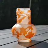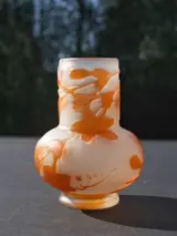 Geblazen glazen vaas, zure camee. Het is versierd met bloeiende takken die vrij op het oppervlak van het stuk zijn gerangschikt, zoals typisch is voor Gallé's cameoglas. Het bestaat uit verschillende lagen glas van verschillende kleuren, verlaagd op verschillende niveaus om toonvariaties en details te creëren die de motieven driedimensionaliteit geven.