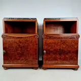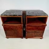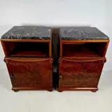 Exceptionally unique pair of walnut side cabinets finished with black marble top Ca. 1920.