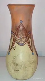 Prachtige Legras emaille vaas met Art Deco motief, gesigneerd Leg